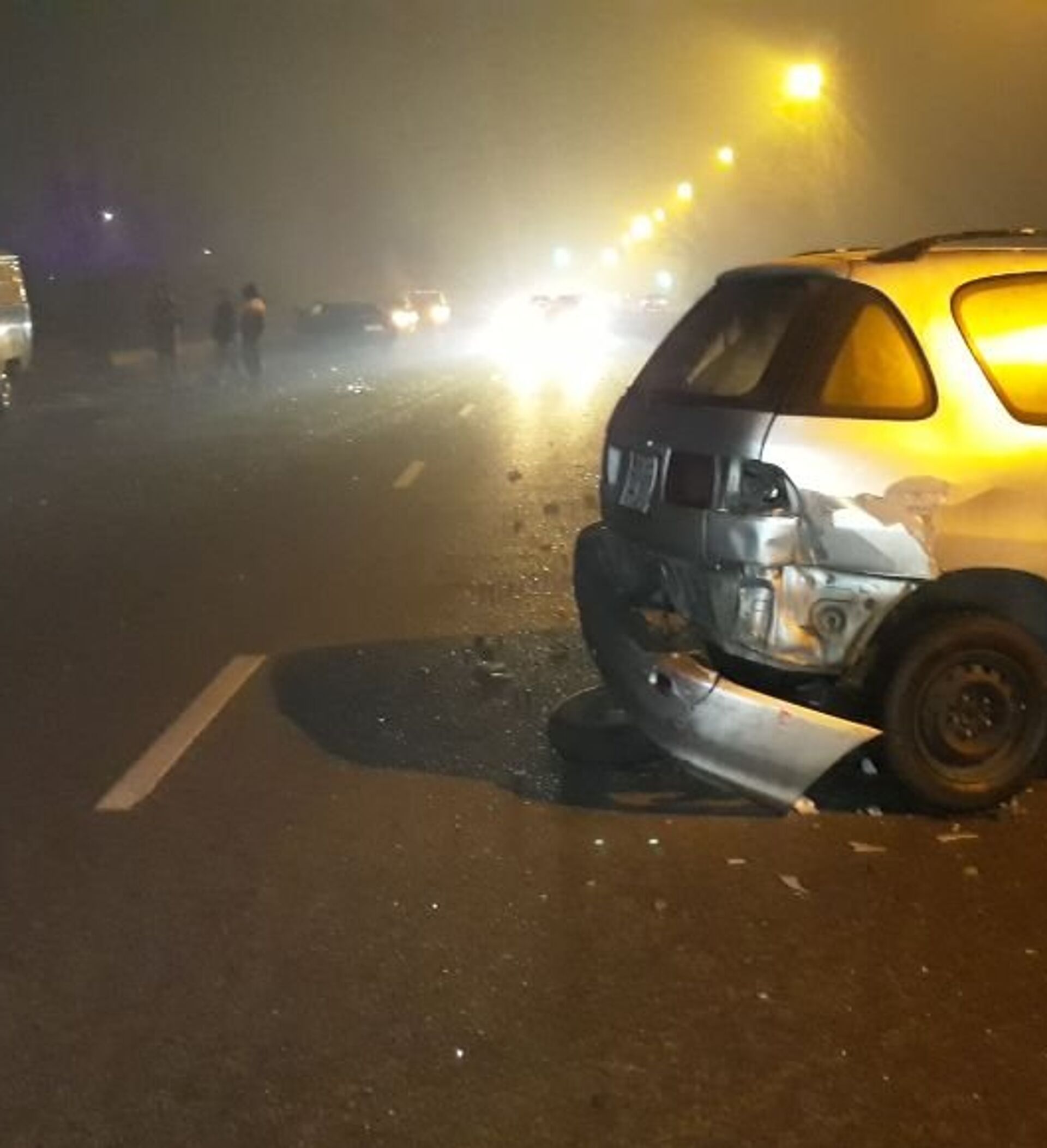 По невыясненным причинам водитель Mercedes выезжает на полосу встречного движения и врезается в бок Toyota Ipsum. От удара Ipsum разворачивает на дороге и он задней частью бьет Toyota Carina E, которая также двигается по Лавренева в южном направлении.