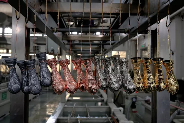 Основание Кубка содержит два слоя малахита, поэтому сувениры вручную подкрашивают зеленой краской. Также здесь изготавливают значки, брелоки и другую сувенирную продукцию.