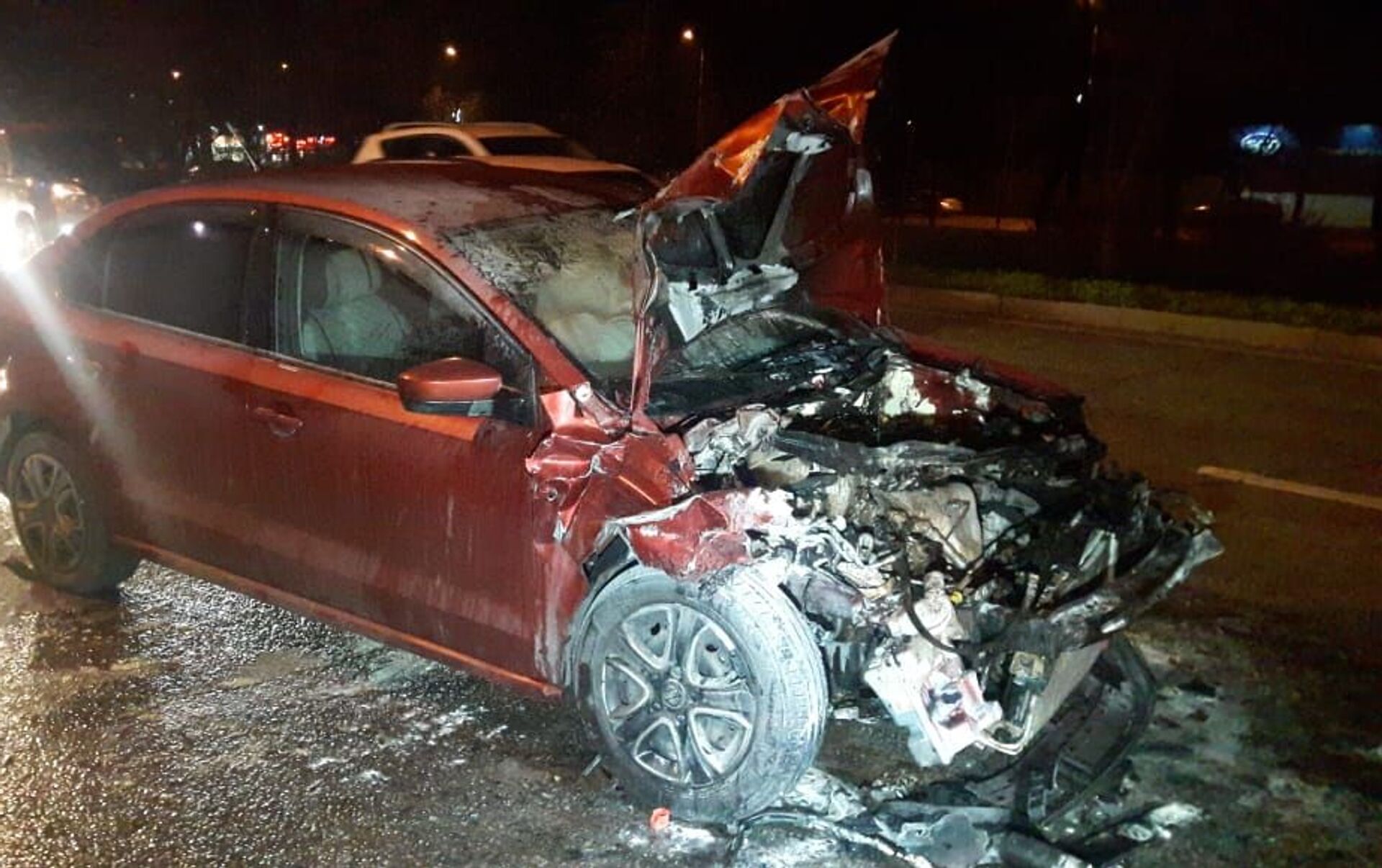 После столкновения Volkswagen Polo загорелся. Увидевшие пожар очевидцы пытались потушить возгорание, но своими силами им сделать это не удалось. Позже на место прибыли пожарные службы, которые потушили разгоревшийся авто.