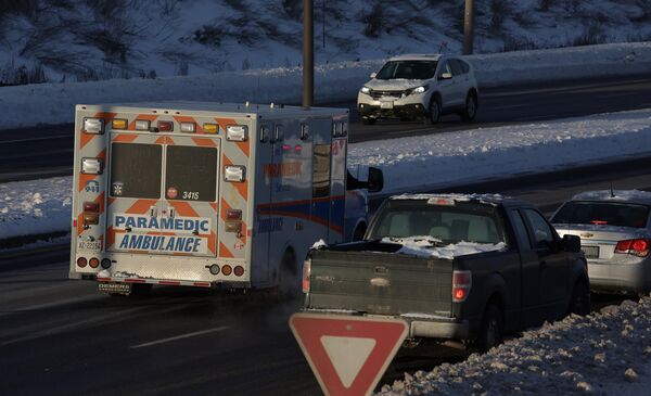 На фото: машина скорой помощи покидает аэропорт Торонто после крушения самолета авиакомпании Delta Airlines.