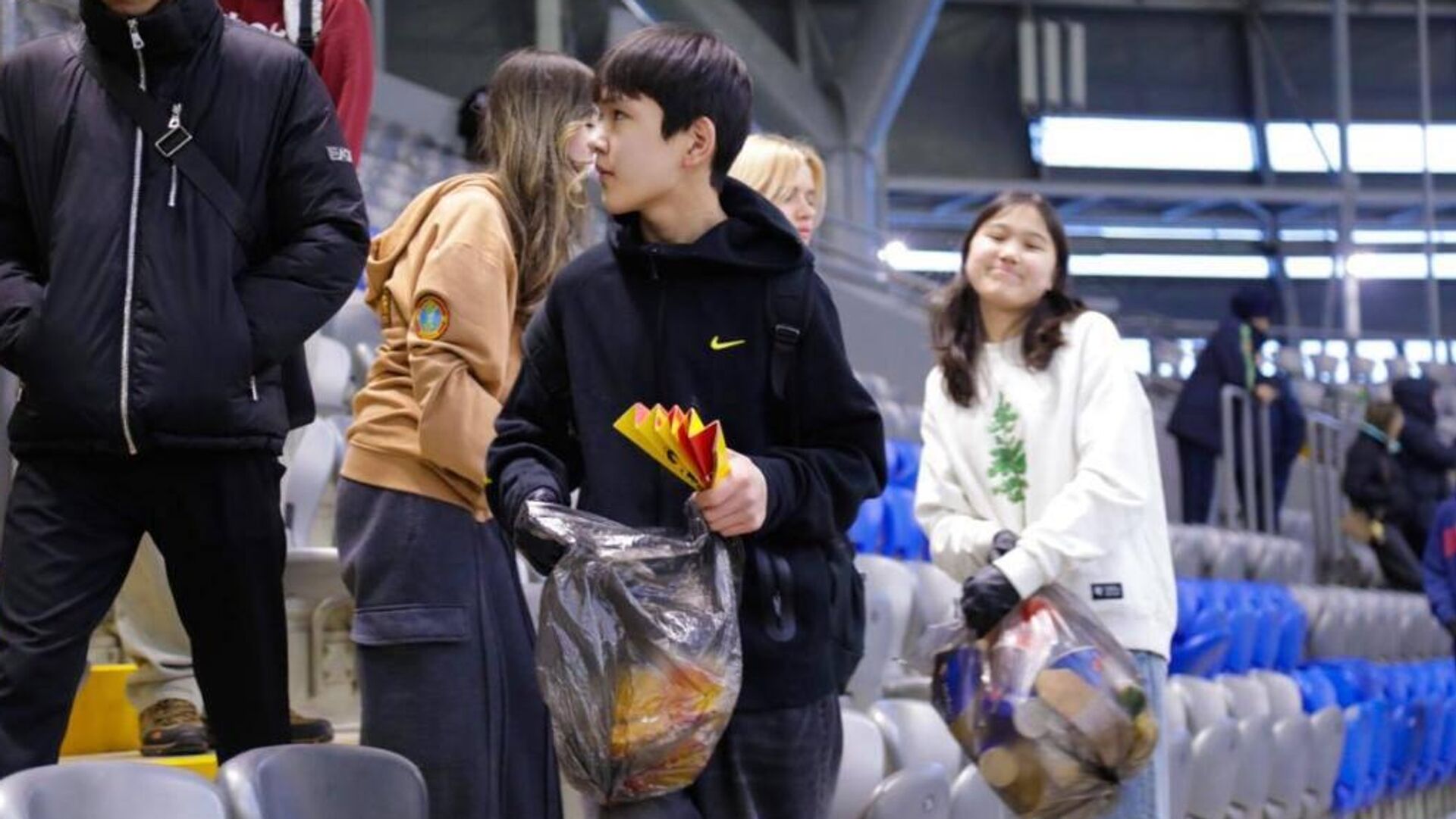 АСТАНА, 22 фев - Sputnik. Футбольные болельщики Астаны навели порядок на стадионе "Астана-Арена" после Суперкубка Казахстана.Когда завершился футбольный матч "Кайрат" – "Актобе" большинство зрителей разошлись, а на уборку трибун остались только болельщики клубов. Матч и эта современная арена подарили нам незабываемые эмоции, говорят они.Напомним, игра завершилась со счетом 2:0 в пользу "Кайрата", который завоевал Суперкубок Казахстана. Посмотреть игру на стадион пришли порядка 30 тысяч человек.