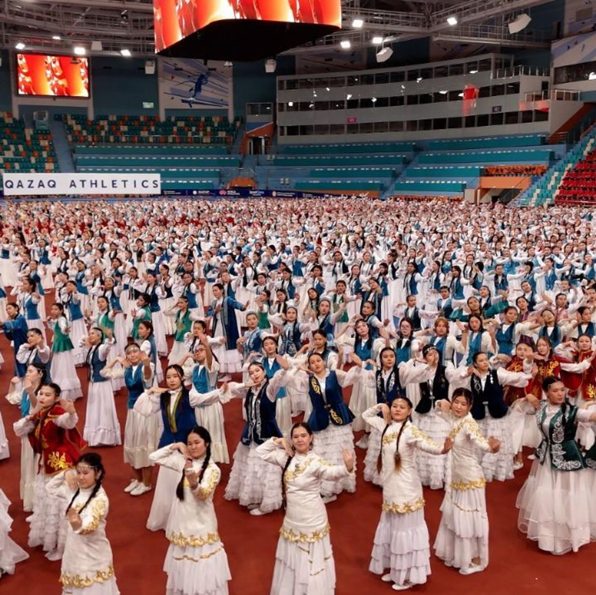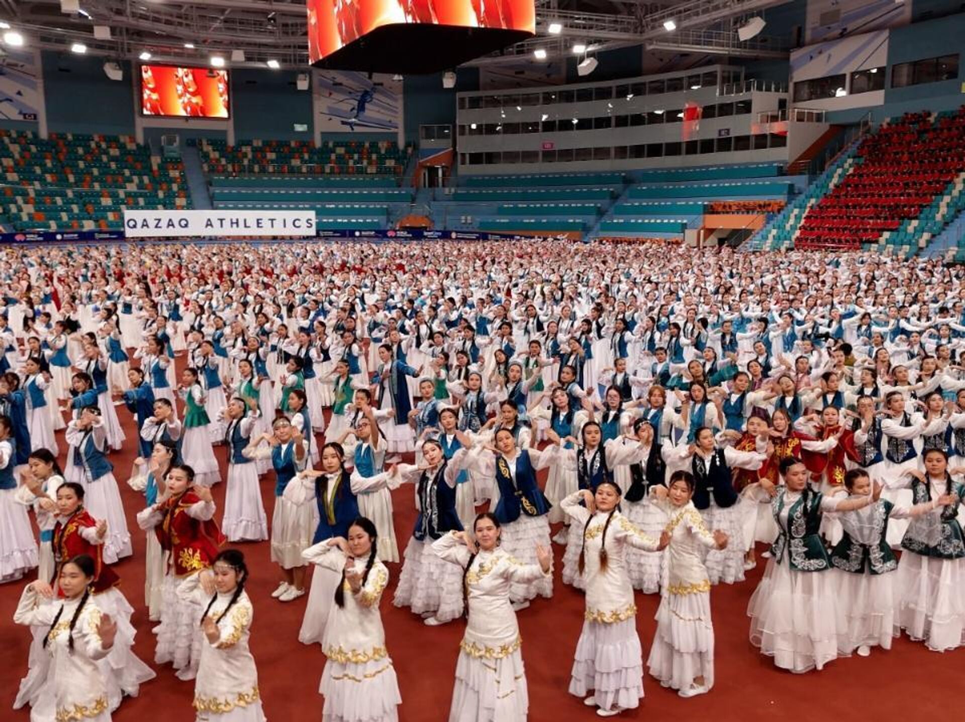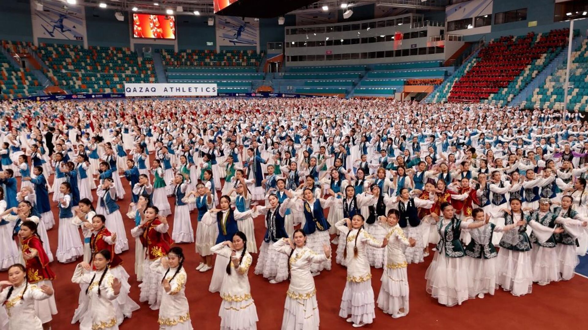АСТАНА, 18 мар - Sputnik. Более 3 тысяч школьниц Астаны одновременно исполнили народный казахский танец "Камажай".Флешмоб прошел в легкоатлетическом комплексе "QAZAQSTAN" в рамках декады "Науразнама" и был приурочен ко Дню национальной одежды.Флешмоб завершился ярким моментом: к танцующим школьницам присоединились зрители, поддержав их ритм и движения. Вместе они образовали живой узор, напоминающий цветок тюльпана.Также в рамках мероприятия прошло дефиле национальных костюмов, где были представлены традиционные казахские наряды студентами колледжей города Астаны.