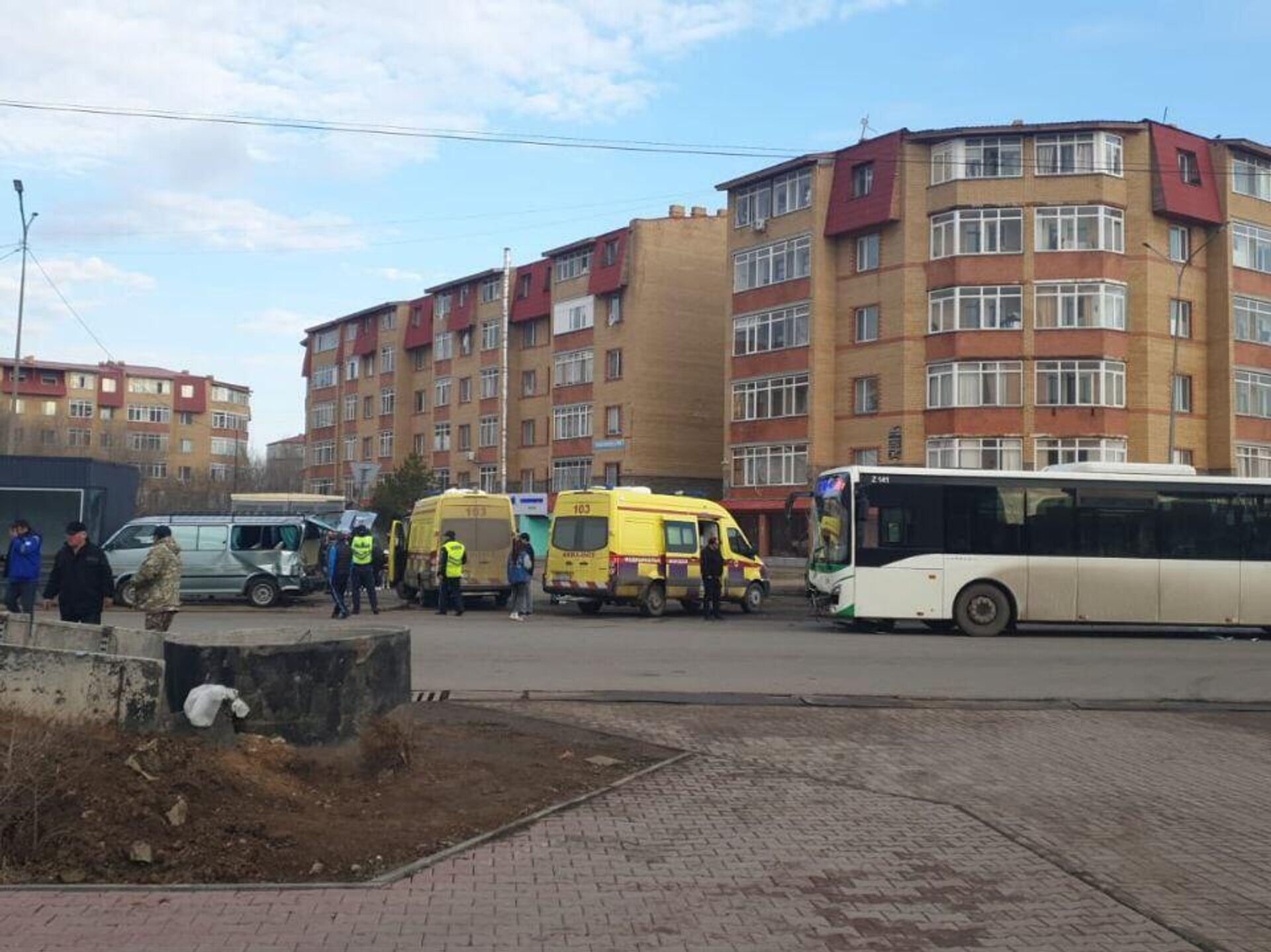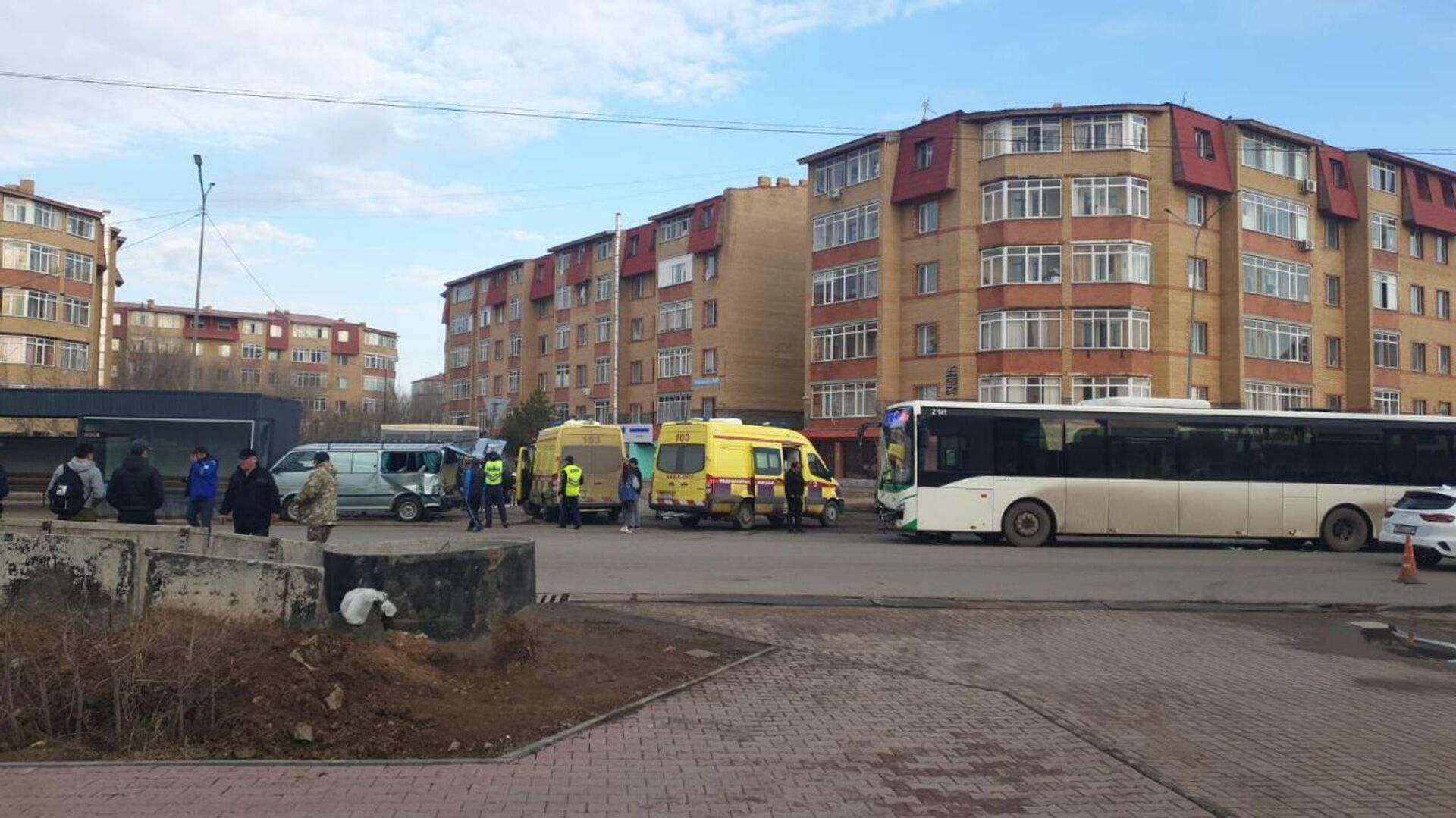 Микроавтобус развозил малышей в детсад, когда столкнулся с рейсовым автобусом и врезался в остановку 09.04.2025, Sputnik Казахстан