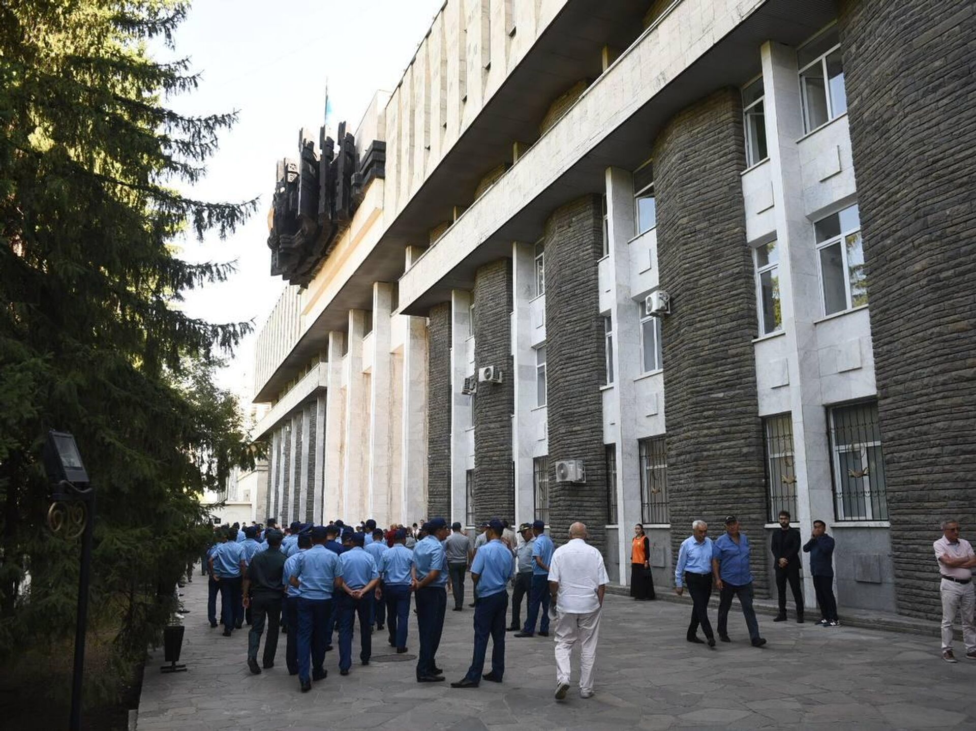 Военные, а также общественные деятели у Дома офицеров, где проходит прощание с Талгатом Мусабаевым