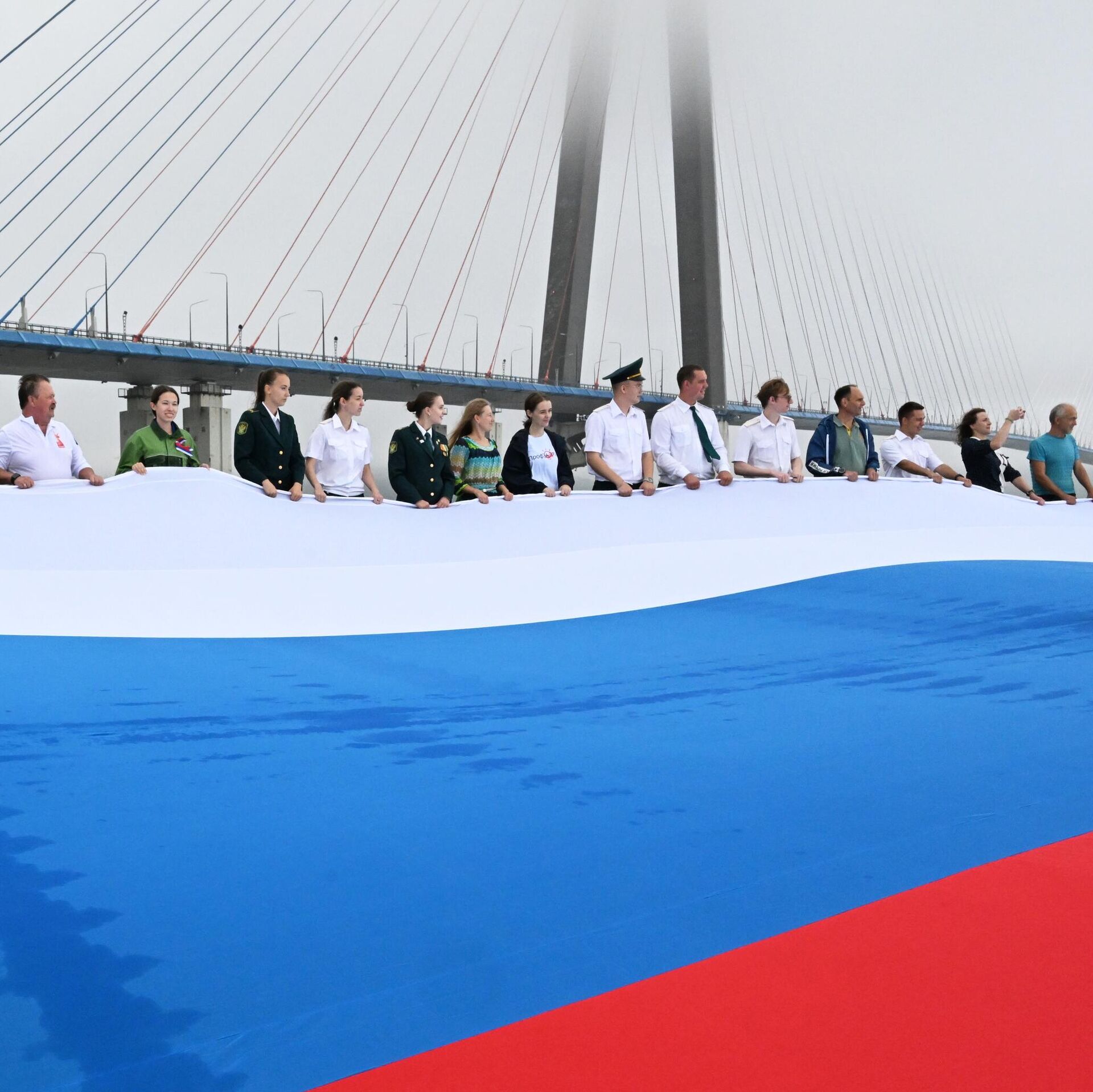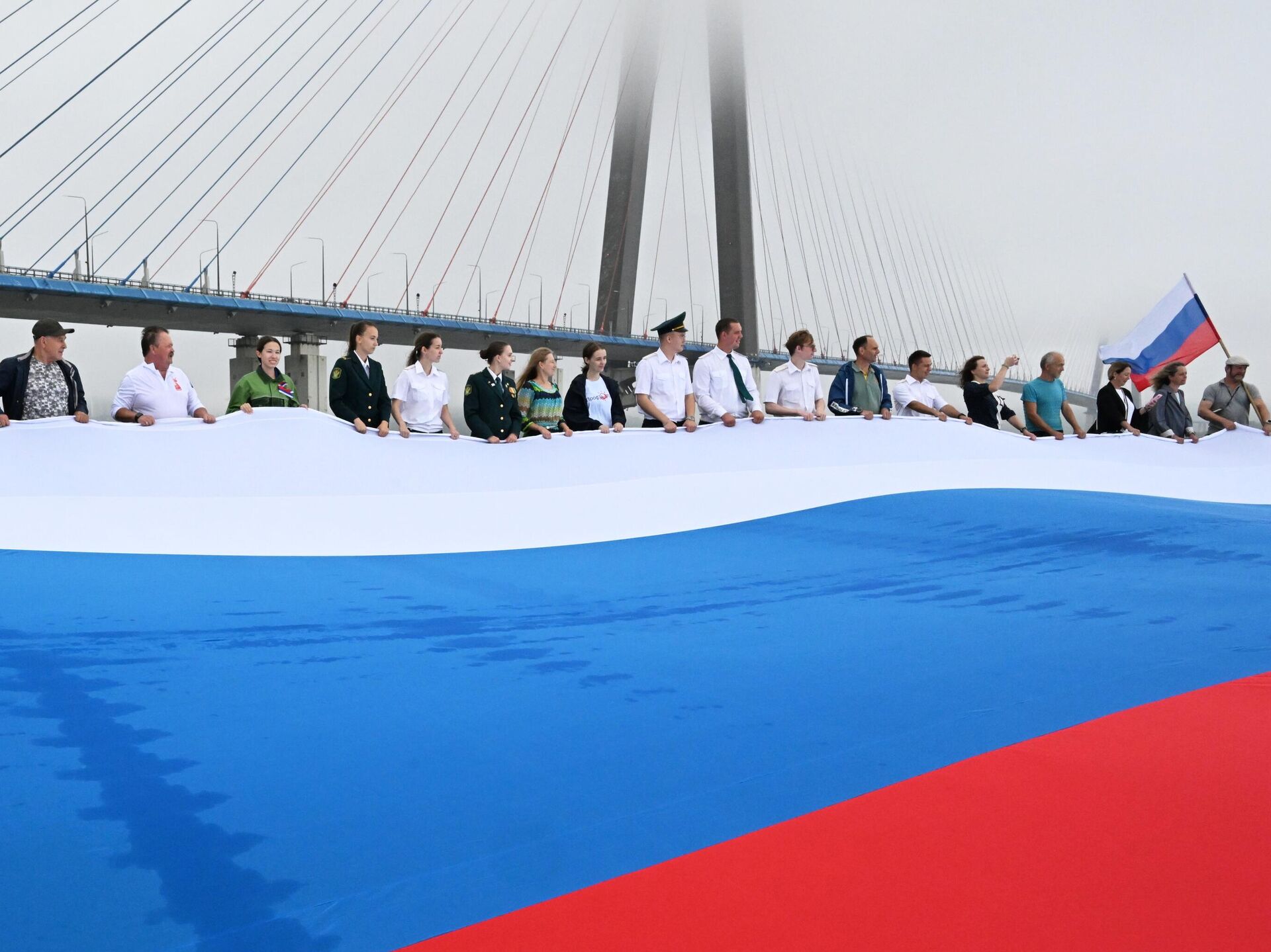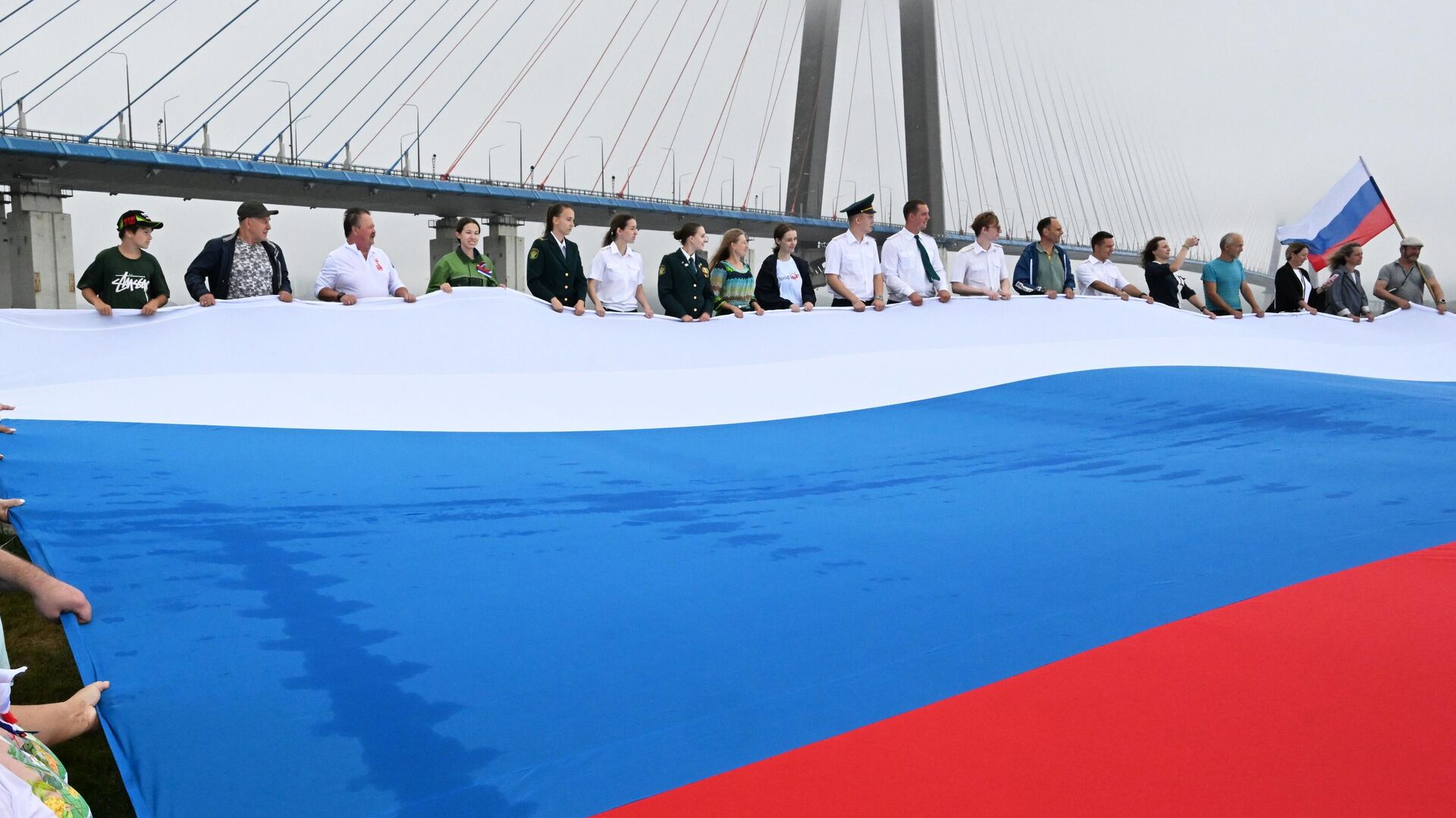 Огромный флаг Российской Федерации развернули во Владивостоке