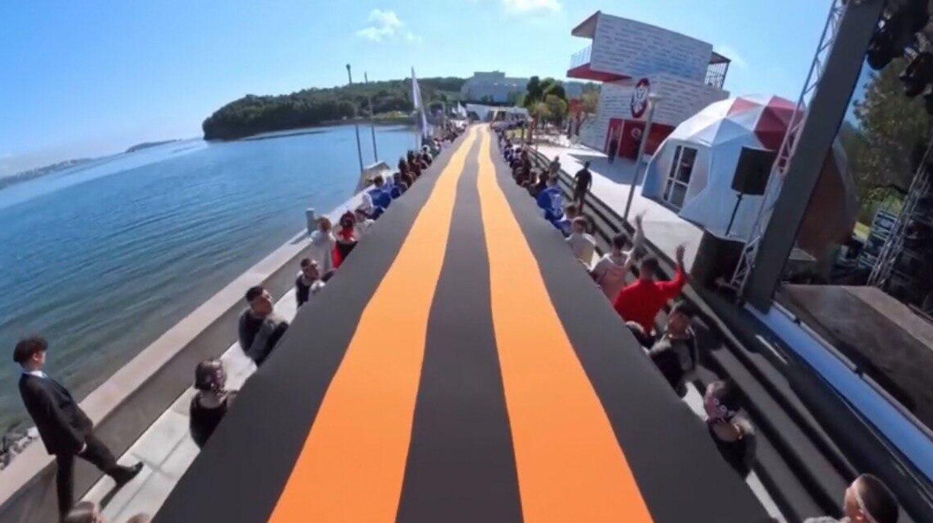 Огромную Георгиевскую ленту пронесли участники ВЭФ во Владивостоке