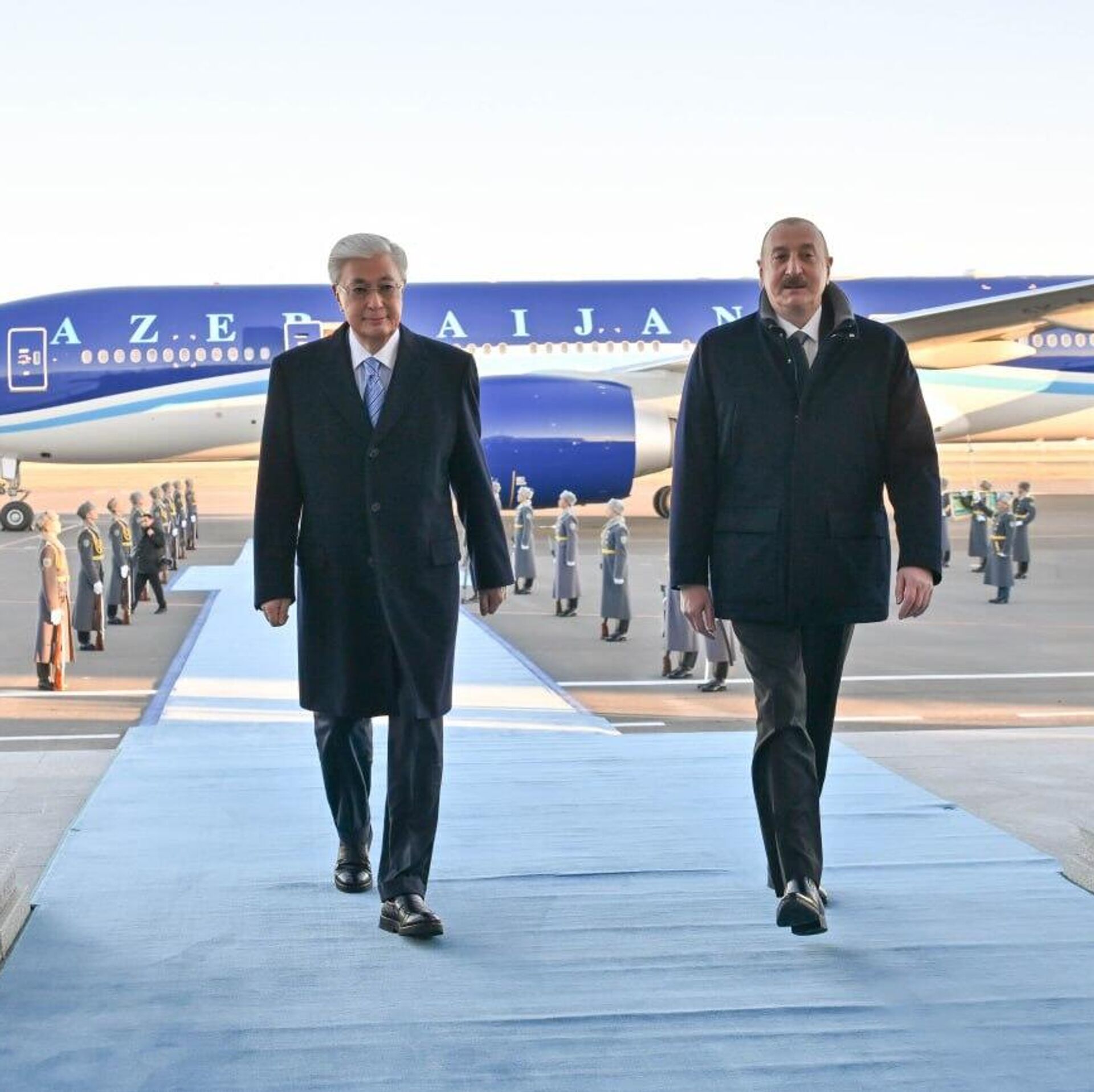 Касым-Жомарт Токаев встретил лидера Азербайджана в аэропорту Астаны.