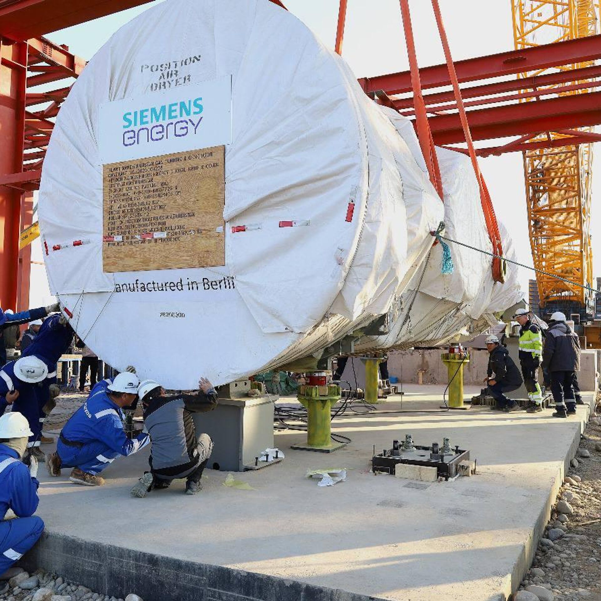 "️На данном этапе газовая турбина установлена на временные монтажные опоры. Основные центровочные, нивелировочные и калибровочные работы будут выполняться позже - в период окончательной установки агрегата на постоянные опоры", - отмечается в сообщении.