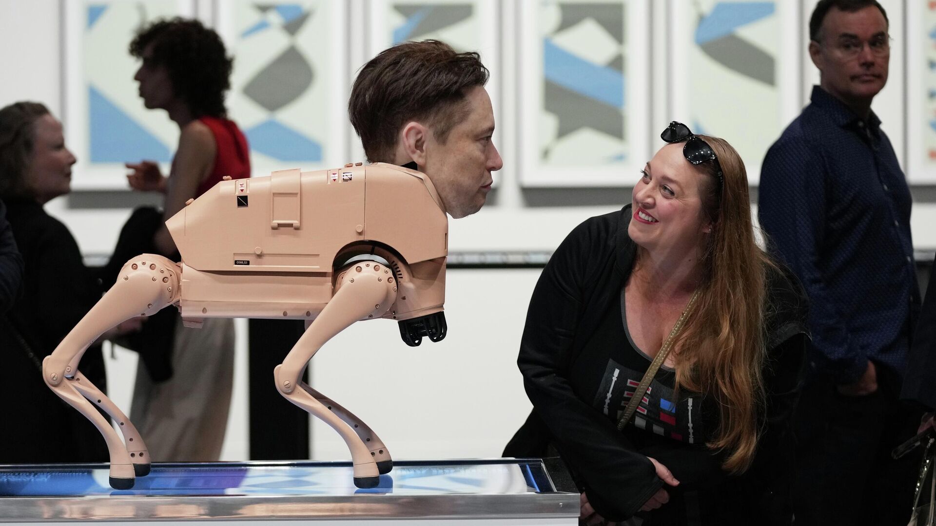 Посетительница смотрит на робота, похожего на Илона Маска, на инсталляции под названием "Обычные животные" художника Бипла на выставке Art Basel Miami Beach в Майами-Бич, штат Флорида, США. - Sputnik Казахстан