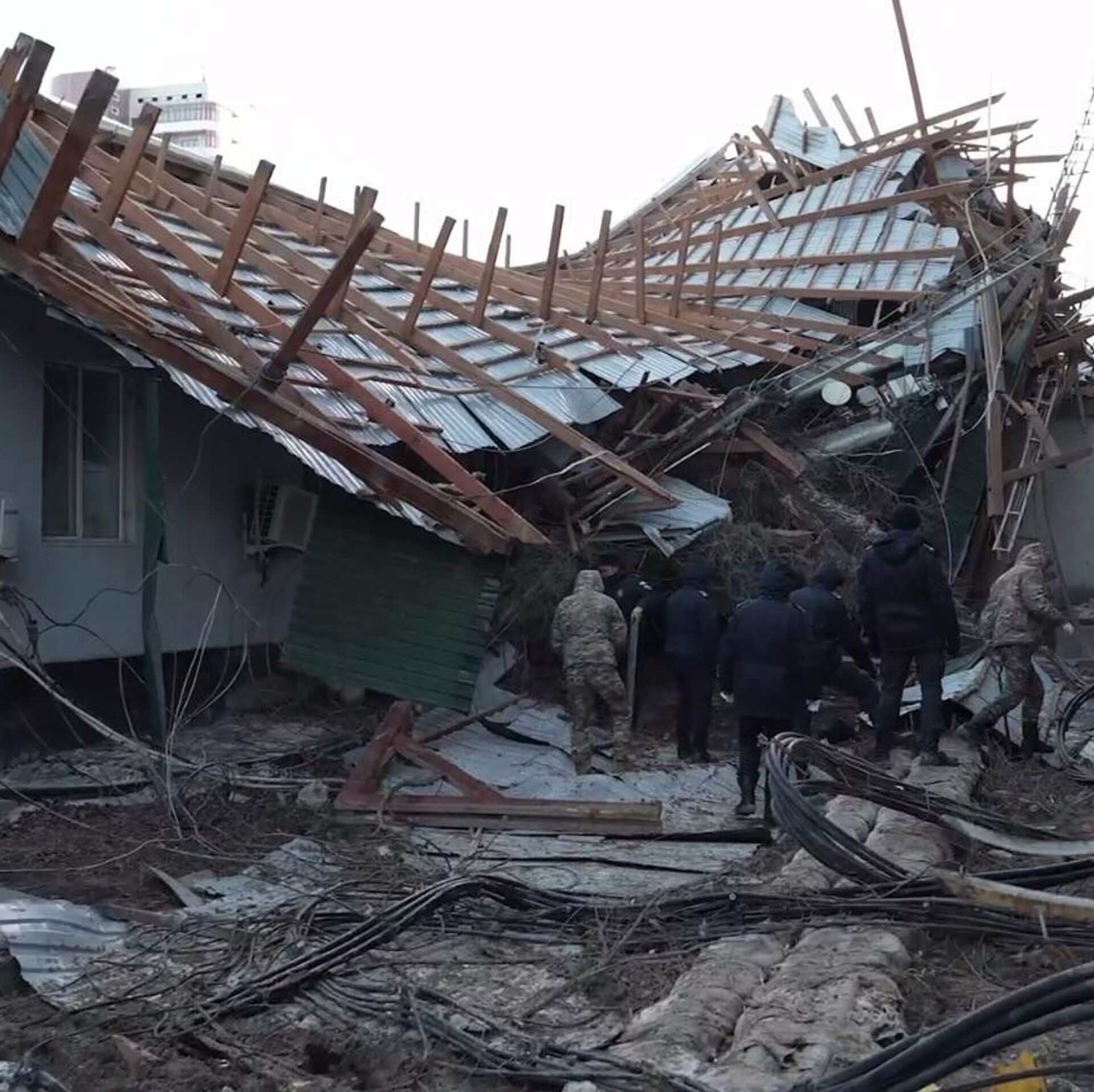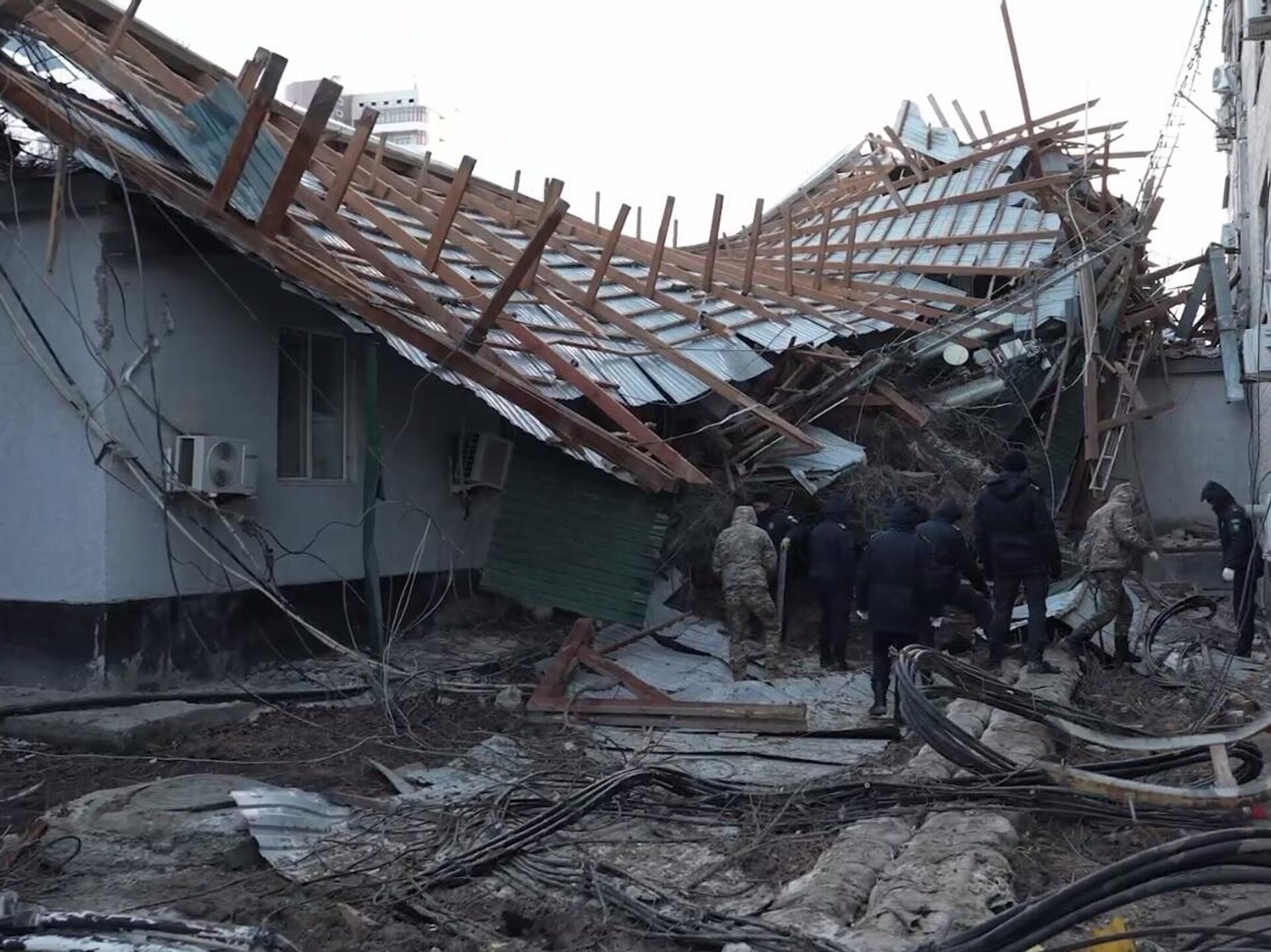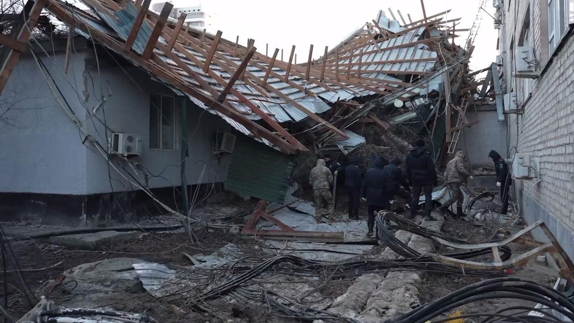 "Специалисты проводят работы по демонтажу обрушившихся частей кровель, а также элементов, представляющих угрозу для жителей и прохожих. Параллельно осуществляется ограждение территорий и меры по обеспечению безопасности. К данным работам привлечены 74 сотрудника управления по ЧС, 8 единиц техники, а также работники предприятия "СпецАвтобаза". Пострадавших нет", - доложил накануне замначальника управления по ЧС Айбек Куспангалиев.