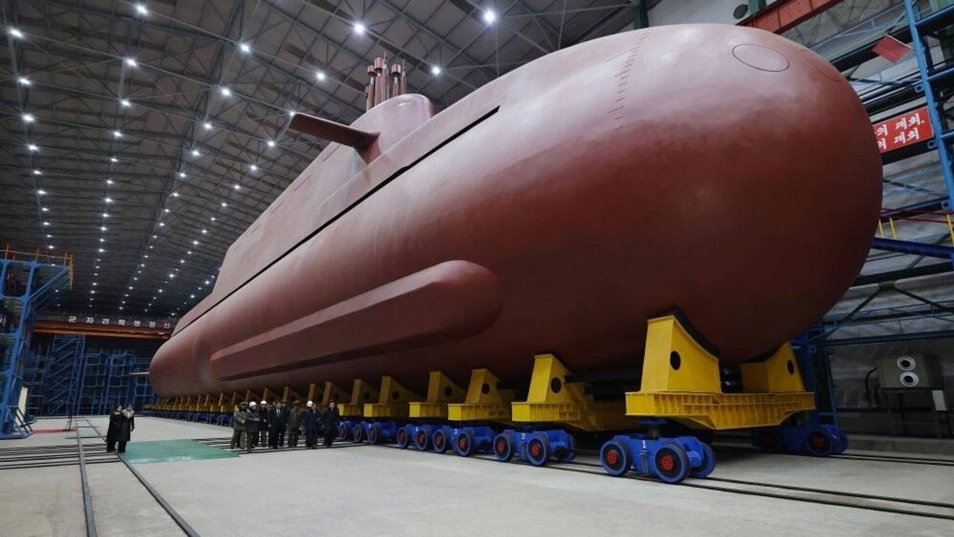 Агентство сообщает, что лидер страны посетил место строительства атомной подлодки водоизмещением 8,7 тысячи тонн со стратегическими управляемыми ракетами и получил доклад о ходе работ.