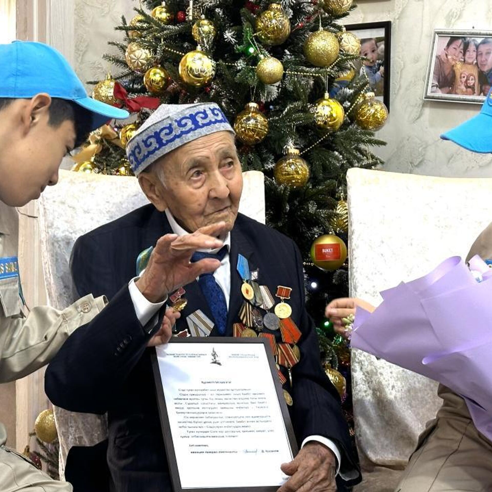 АСТАНА, 16 янв - Sputnik. В Талдыкоргане военнослужащие поздравили со 102-м днем рождения ветерана войны Ыскака Кусаинова,