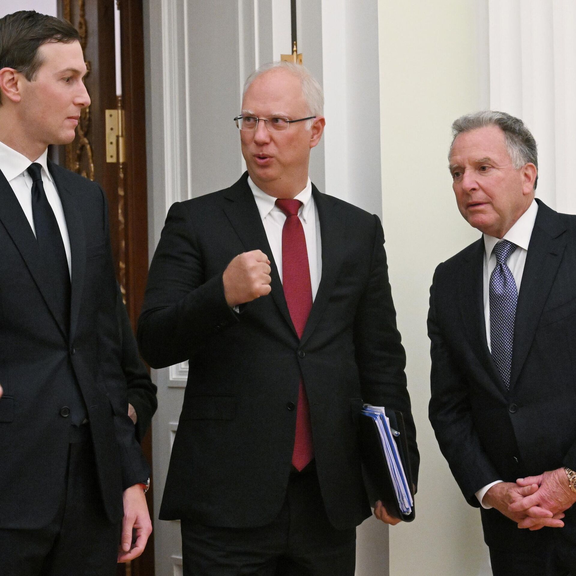 "Специальный посланник Стивен Уиткофф и Джаред Кушнер завтра будут в Абу-Даби для очередного раунда трехсторонних переговоров", — сказала она журналистам.