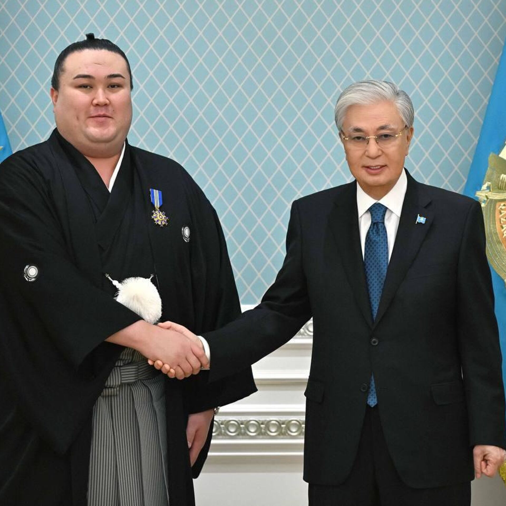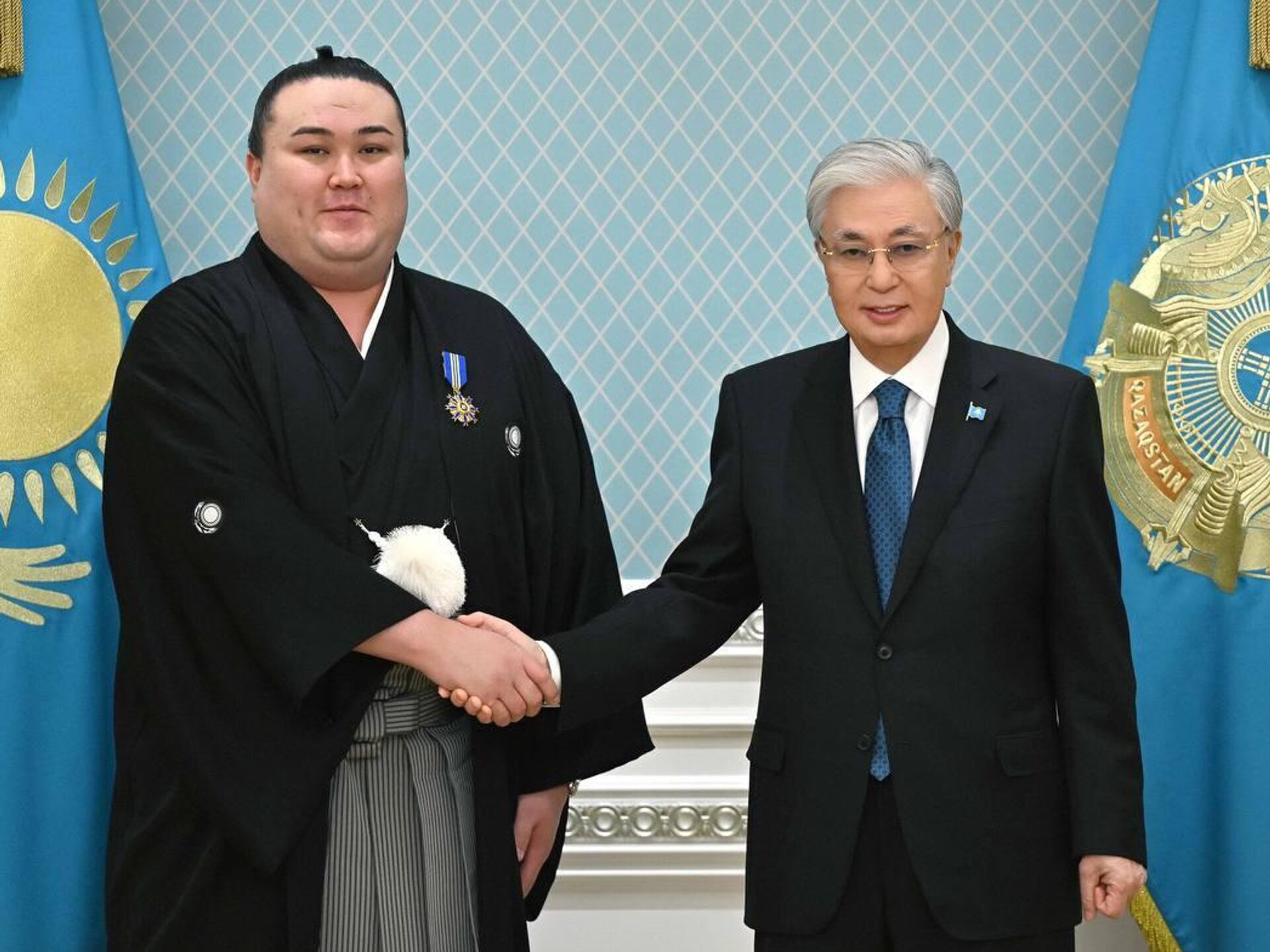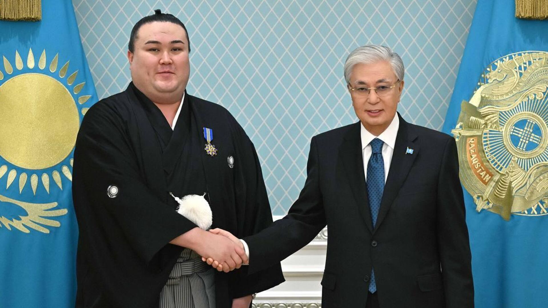 "Президент поздравил спортсмена с завоеванием на Кубке Императора в 2025 году титула "маэгасира" – высокого ранга в борьбе сумо, а также с получением специального приза "Канто-сё" (боевой дух) по итогам соревнований. Глава государства назвал данную награду результатом упорства и трудолюбия сумоиста", - сообщила Акорда.