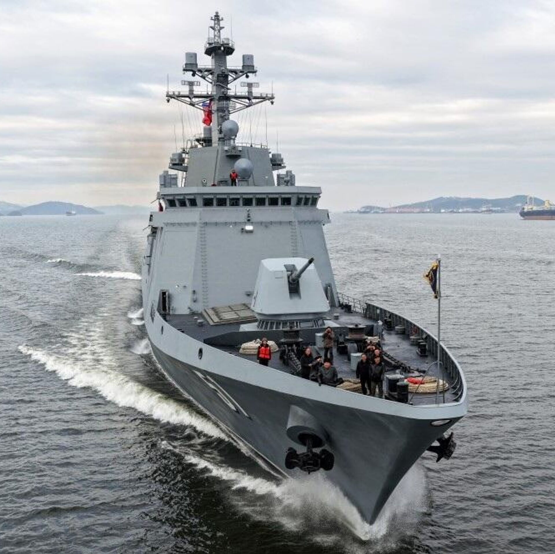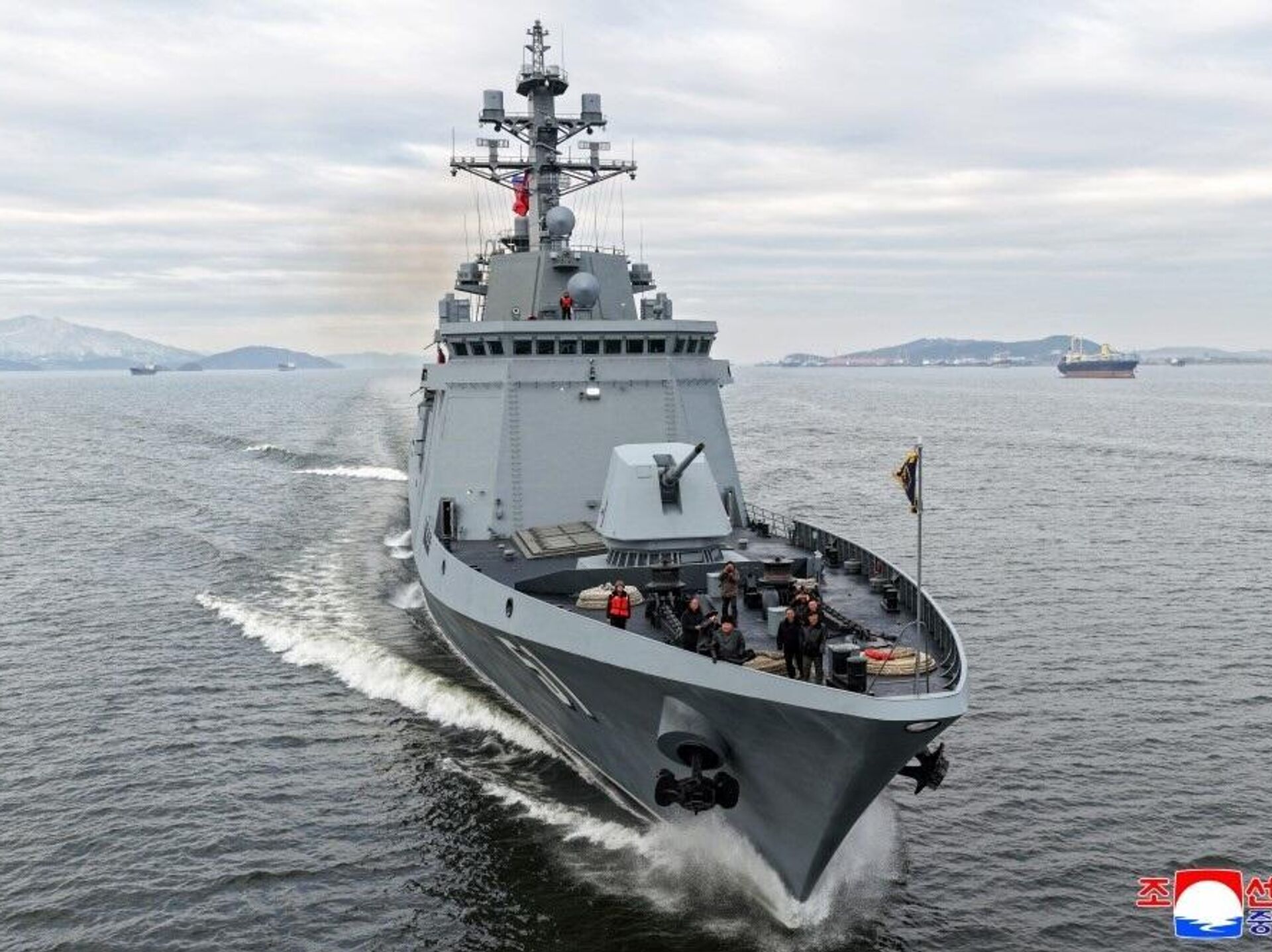 "В этот день с присутствием товарища Ким Чен Ына проведено испытательное плавание эсминца, направленное на оценку его маневренных элементов. Товарищ Ким Чен Ын высоко оценил, что маневренность корабля удовлетворяет требованиям для ведения боевых операций, а также установлена замечательная система управления кораблем", - сообщает ЦТАК.