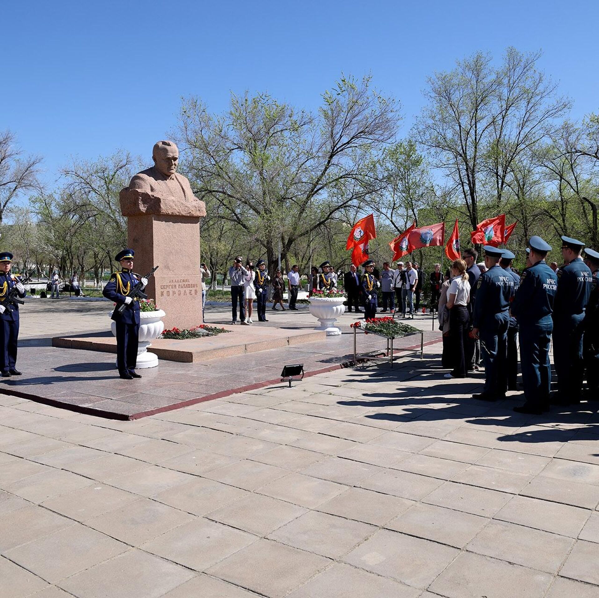В городе Байконур в День космонавтики возложили цветы к памятникам Королёву и Гагарину
