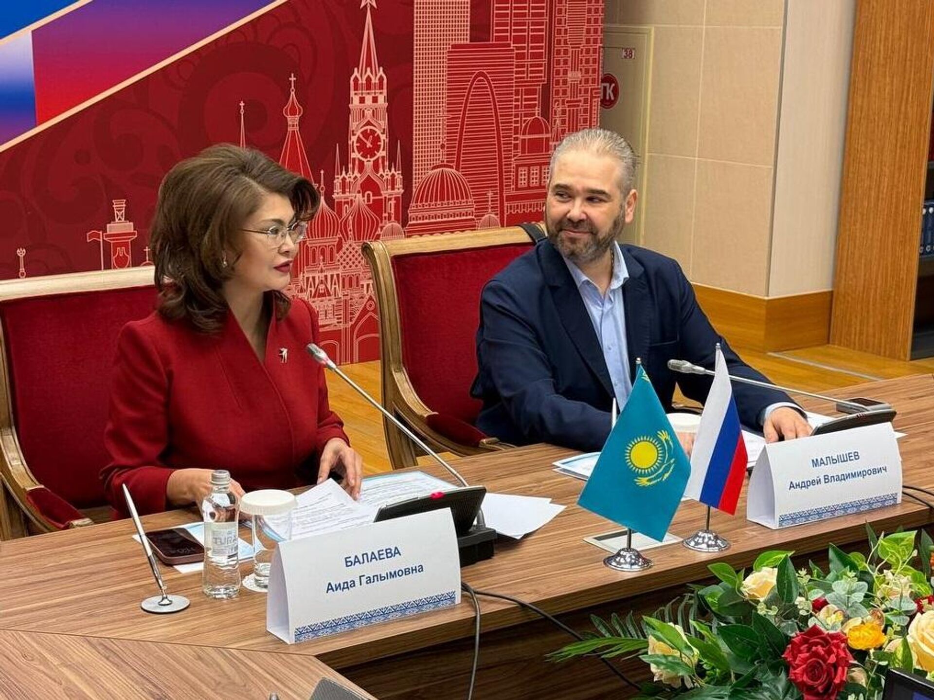 Круглый стол с участием зампремьера Казахстана Аиды Балаевой и вице-министром культуры России Андреем Малышевым